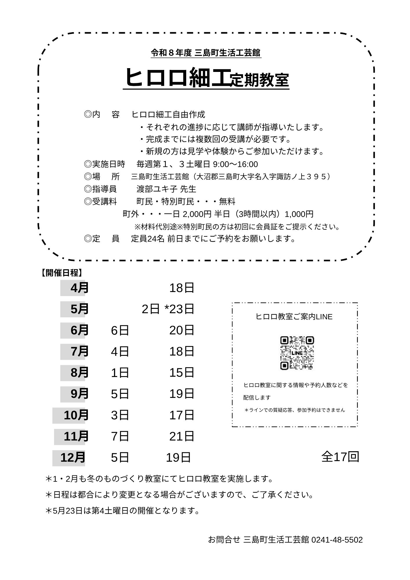 令和8年度ヒロロ教室開催について 2026.04.02 今年度もヒロロ教室を開催いたします。 昨年度は多くの生徒のみなさまに受講していただき、ありがとうございました。 初回教室は4月18日㊏です。みなさまのご参加をお待ちしております。 詳しくは、下記のチラシをご確認ください。 Tweet 0